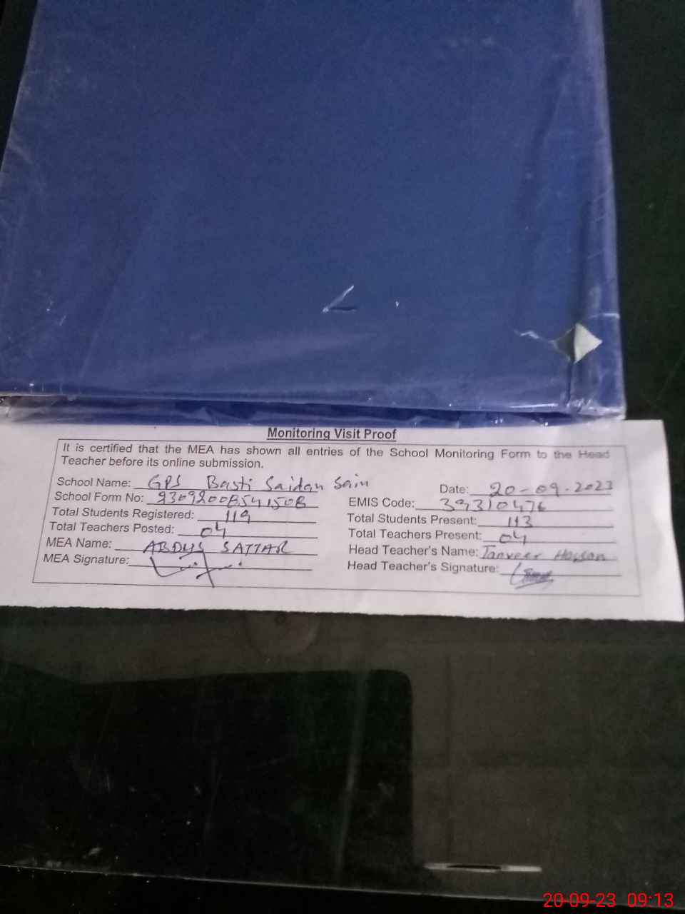 | EMIS Code: 39310476 | Name of School: GPS BASTI SADAN SAIN | |||