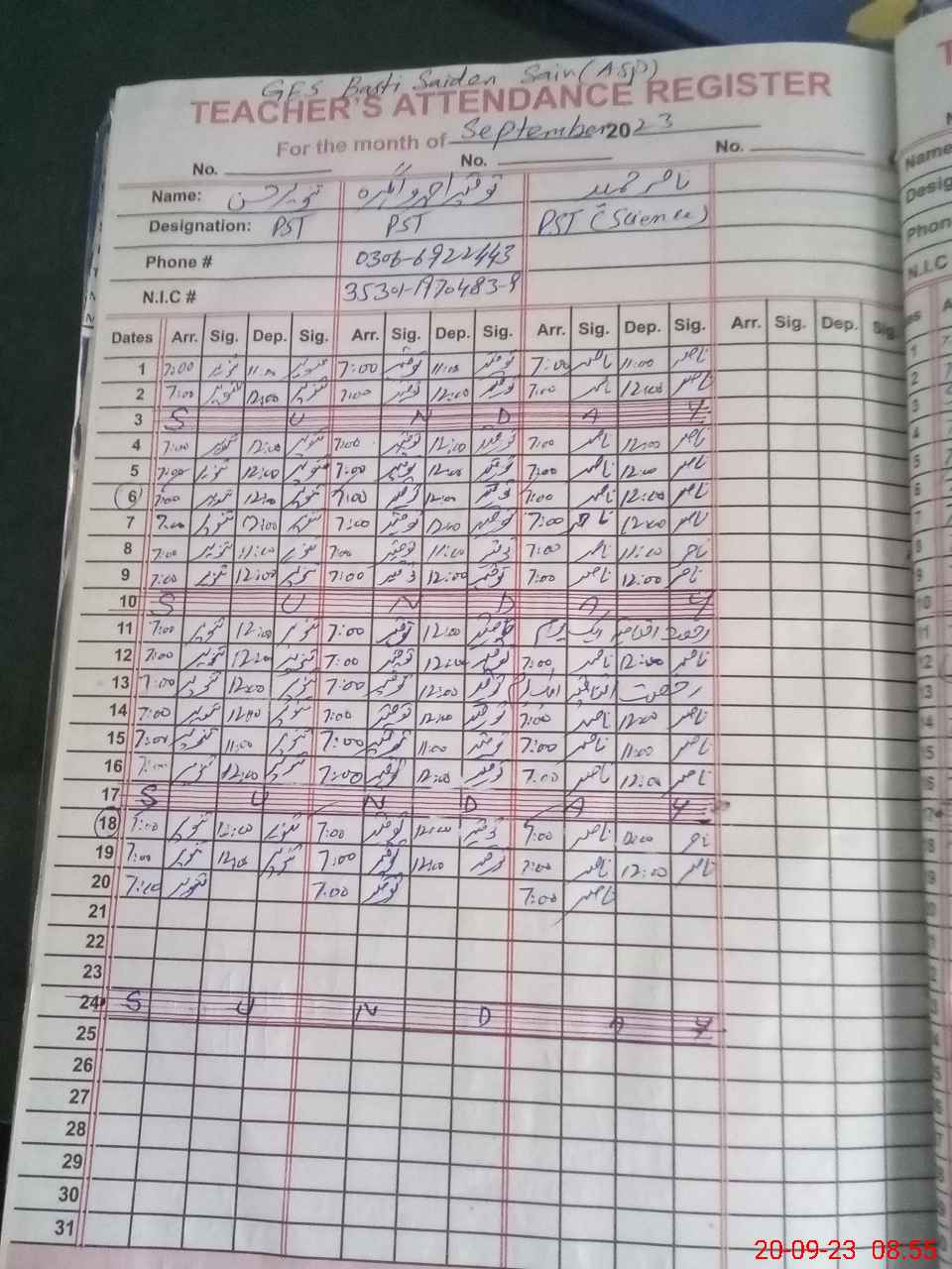 | Name: Ta**** Ha**** Designation: (School Headmaster's/Headmistress's) PST Phone/Cell Number: 03**** |