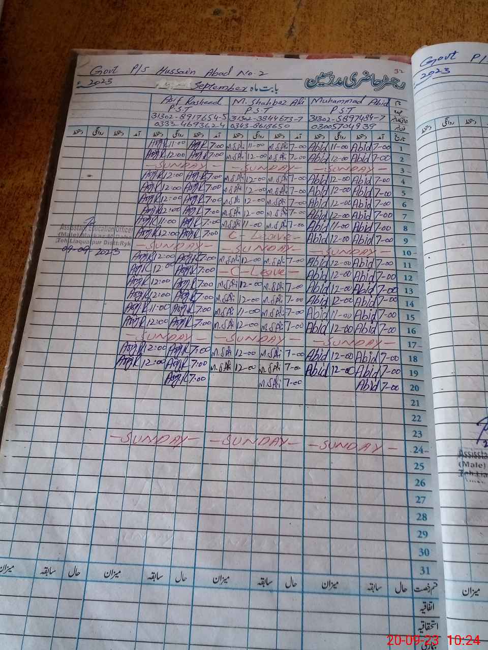 | Name: MU**** AB**** Designation: (School Headmaster's/Headmistress's) PST Phone/Cell Number: 03**** |