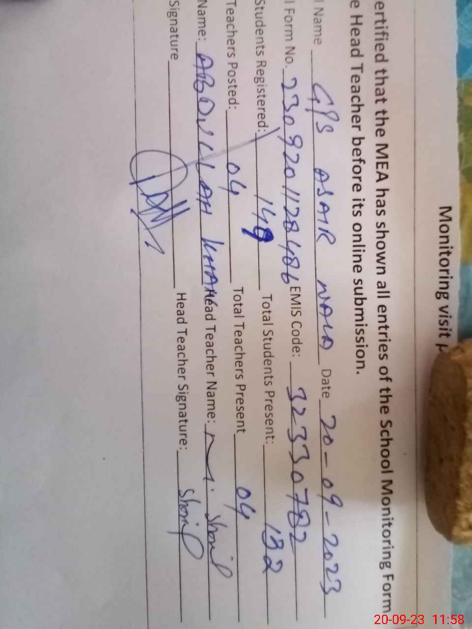 | EMIS Code: 32330782 | Name of School: GPS ASAIR WALA | |||