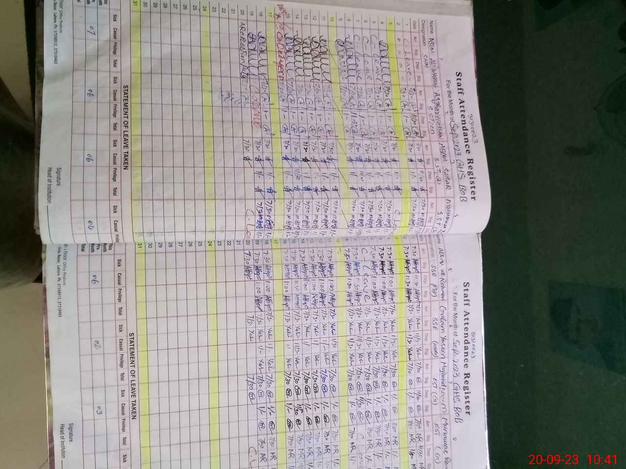 | CNIC | Full Name | Designation | R/C | Absence During Last Calender Month |