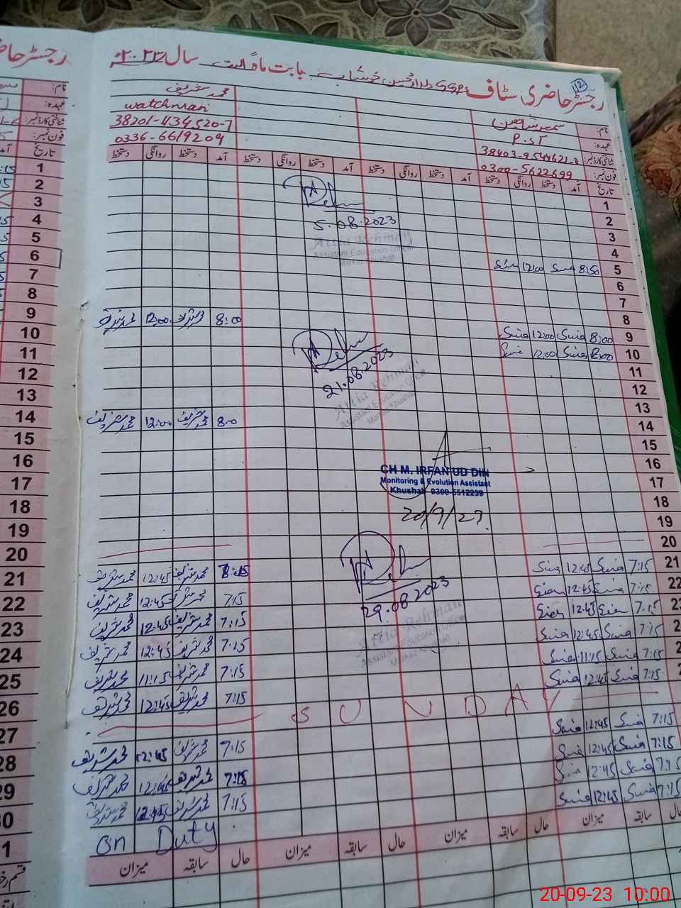 | Name: Sa**** Ri**** Designation: (School Headmaster's/Headmistress's) PST Phone/Cell Number: 03**** |