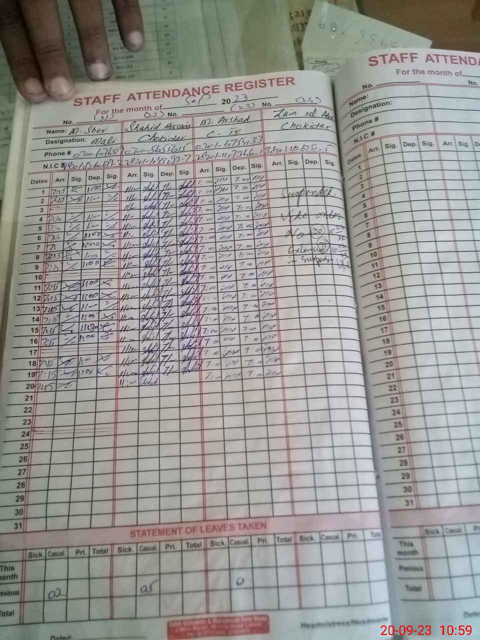 | Name: UM**** HA**** Designation: (School Headmaster's/Headmistress's) HEADMASTER Phone/Cell Number: 03**** |