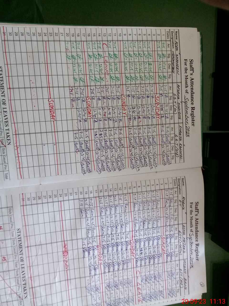 | Leave | Duty | Absent | Maternity | Medical | Ex- Pak |
