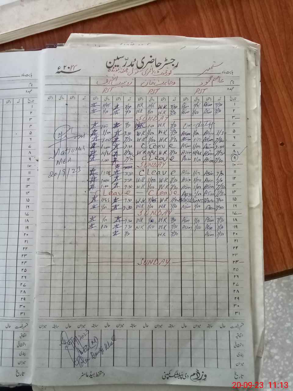 | CNIC | Full Name | Designation | R/C | Absence During Last Calender Month |