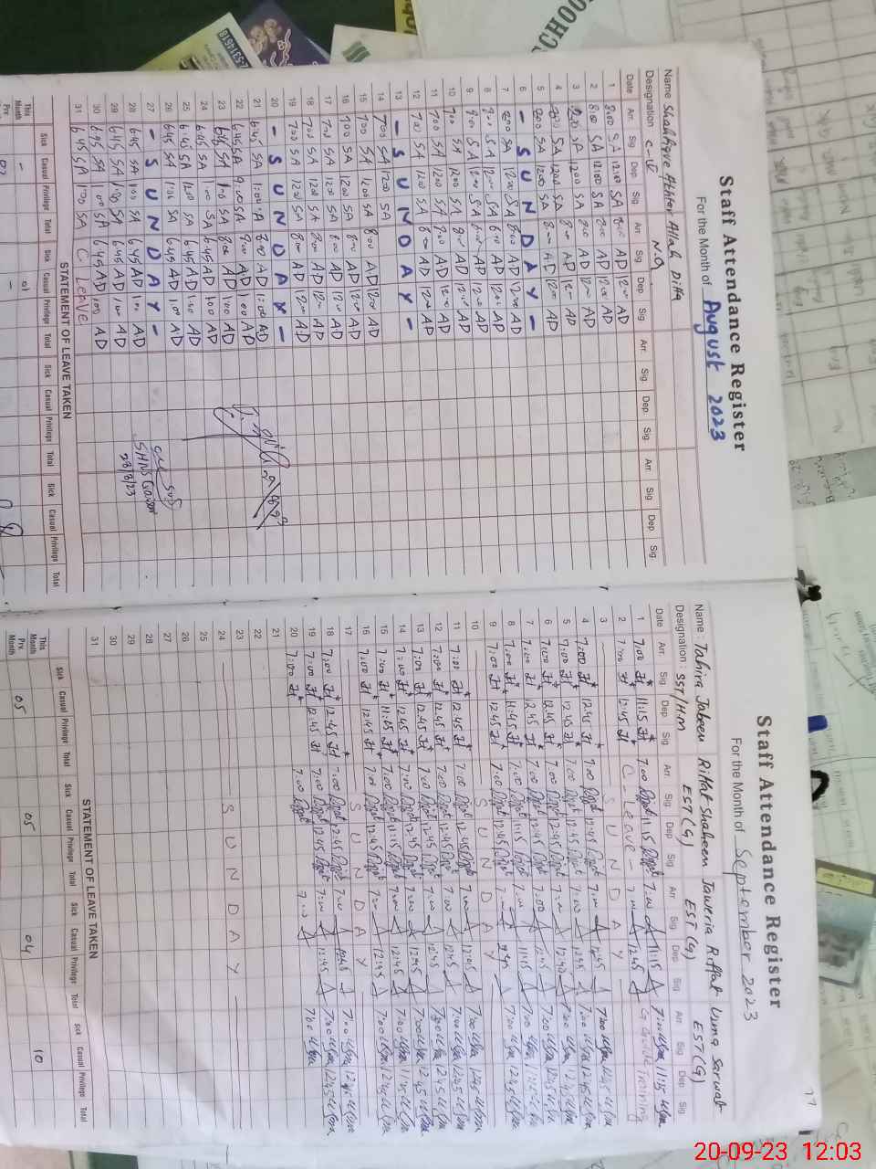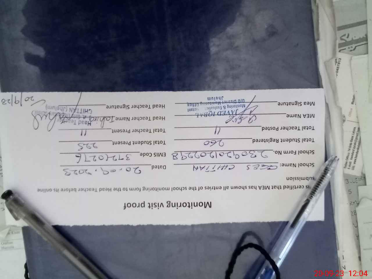 | Attendance Register | Head Teacher | MEA with School | Visit Proof |