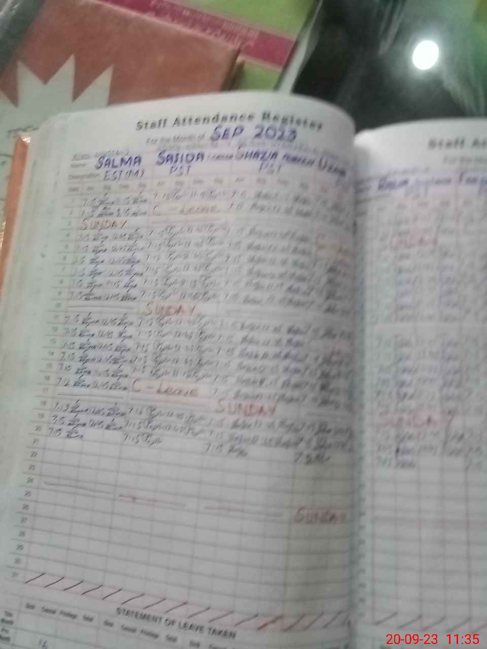 | Monitoring Date: 20-09-2023 | Start Time: 20-09-2023 11:35 AM | End Time: 20-09-2023 12:15 PM | Name of MEA: SH**** AL**** ZI**** (R**** | |