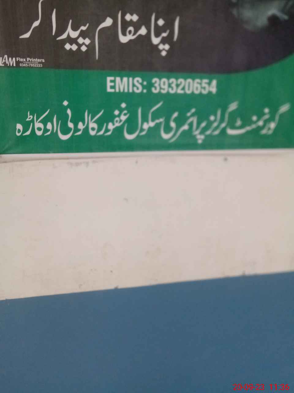 | EMIS Code: 39320654 | Name of School: GGPS GHAFOOR COLONY OKARA | |||