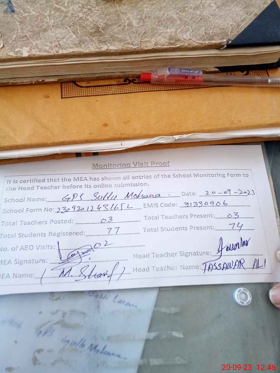 | EMIS Code: 31330906 | Name of School: GPS GULLU MOHANA | |||