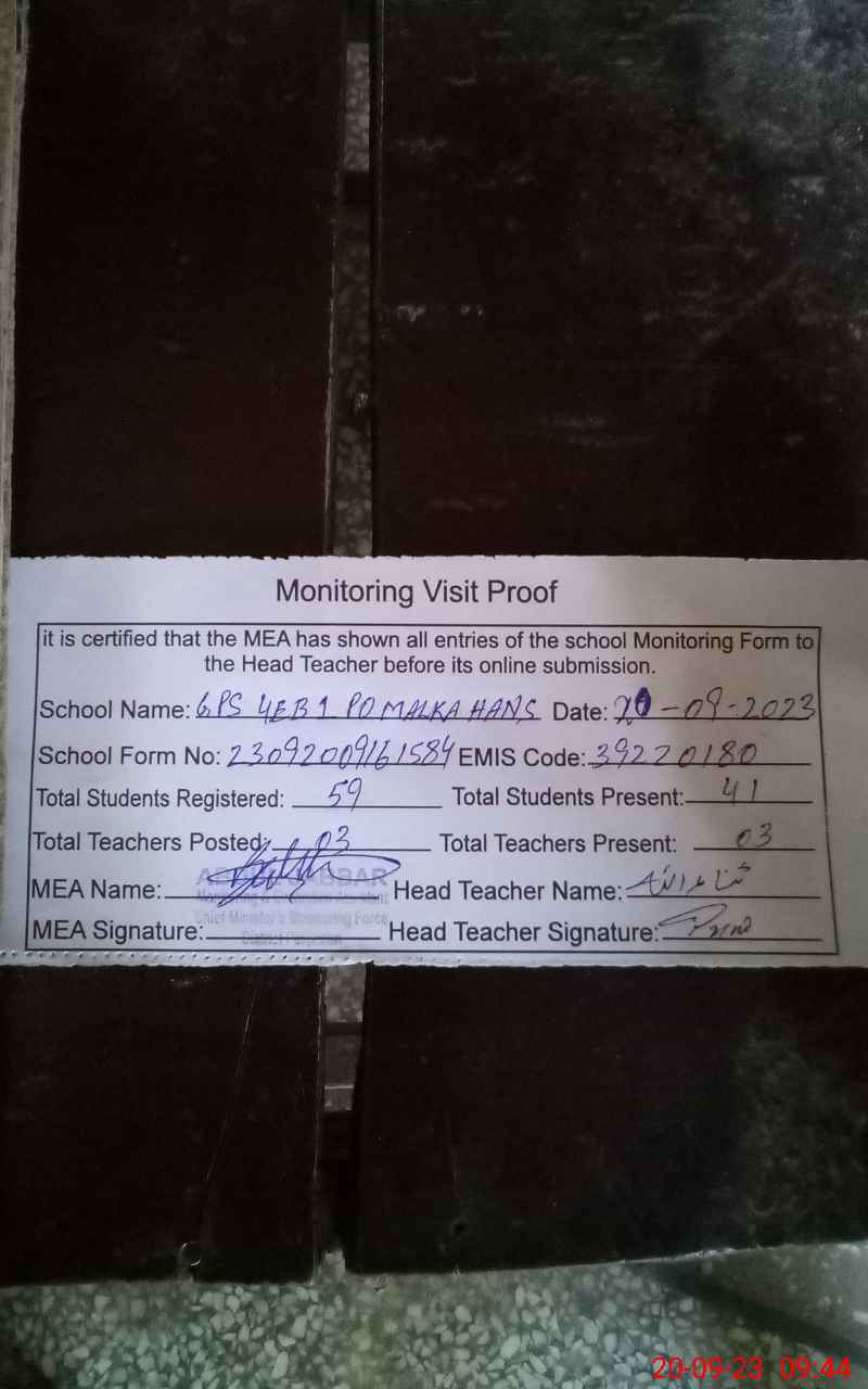 | EMIS Code: 39220180 | Name of School: GPS 4 EB 1 P/O MALKA HANS | |||