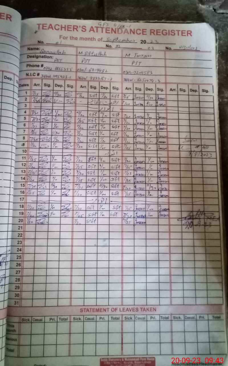 | Name: SA**** UL**** Designation: (School Headmaster's/Headmistress's) PST Phone/Cell Number: 03**** |