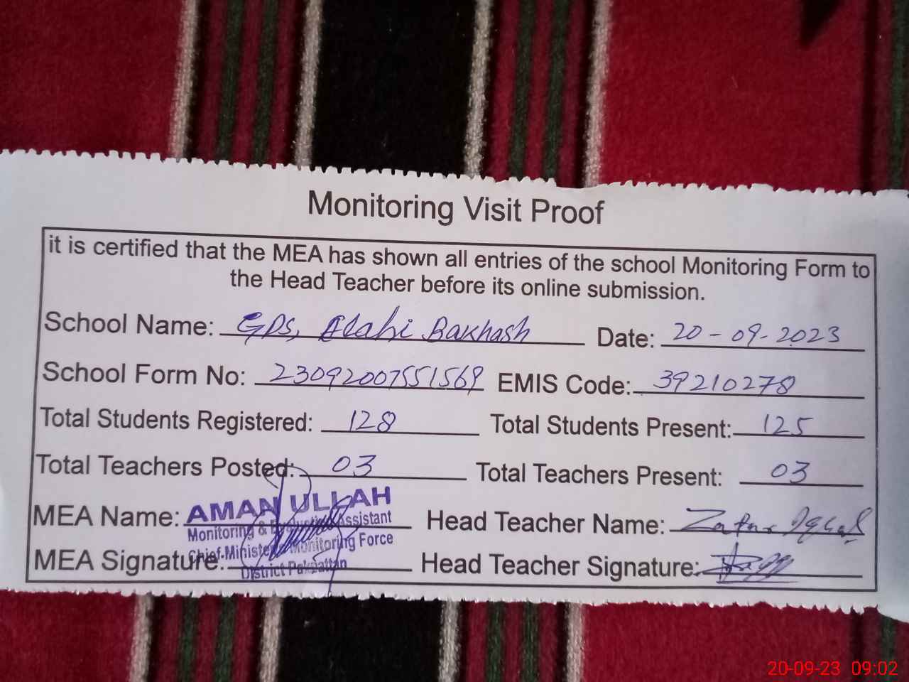 | EMIS Code: 39210278 | Name of School: GPS ELAHI BAKHSH | |||
