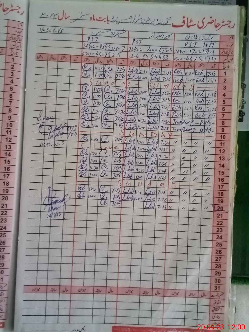 | Name: Sh**** Hu**** Designation: (School Headmaster's/Headmistress's) PST Phone/Cell Number: 03**** |