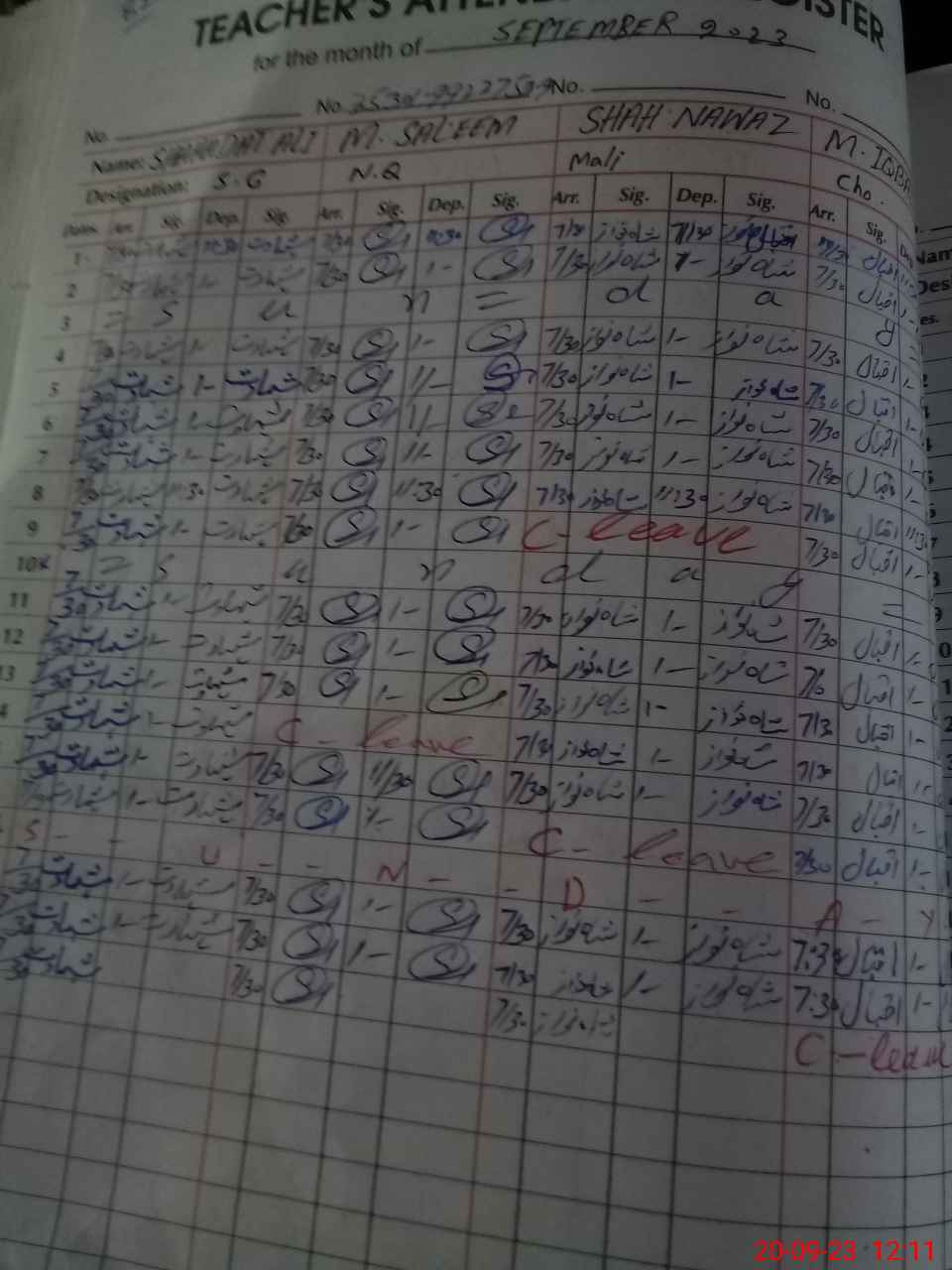 | CNIC | Full Name | Designation | R/C | Absence During Last Calender Month |