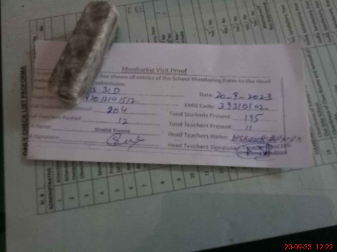 | Attendance Register | Head Teacher | MEA with School | Visit Proof |