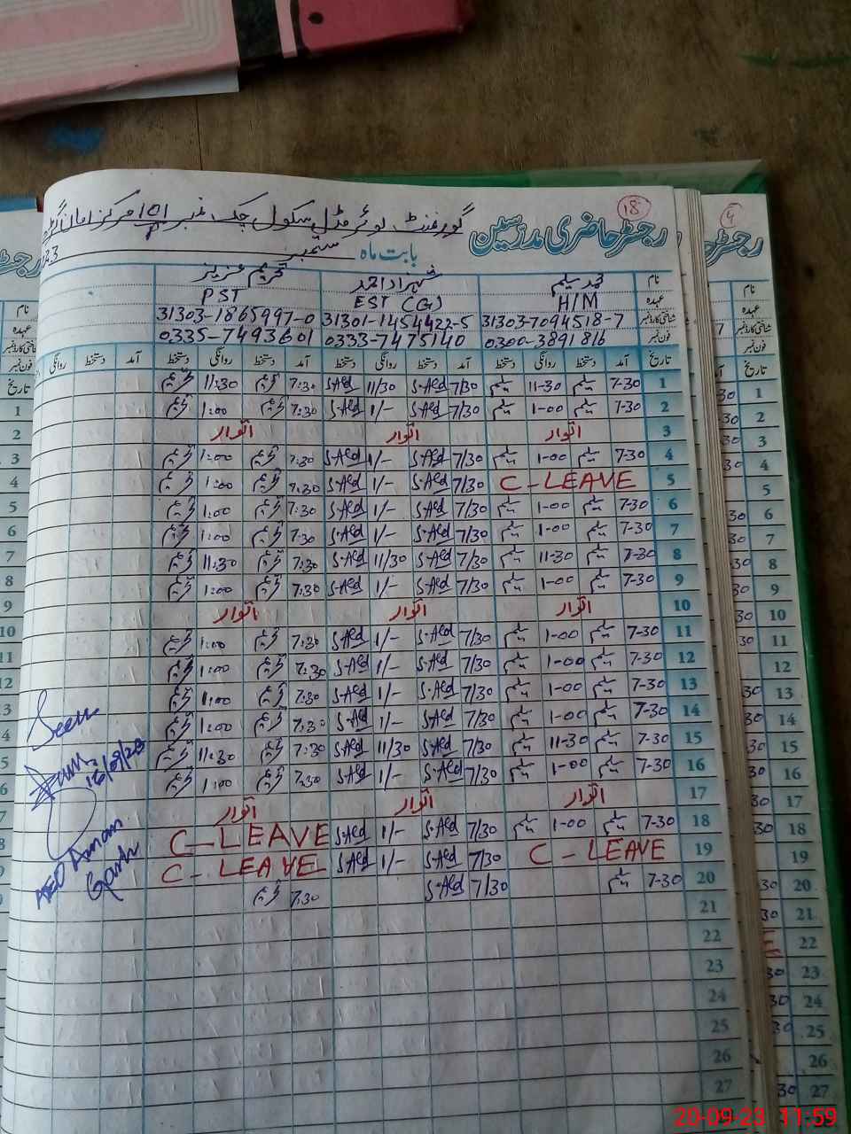 | Name: MU**** SA**** Designation: (School Headmaster's/Headmistress's) PST Phone/Cell Number: 03**** |