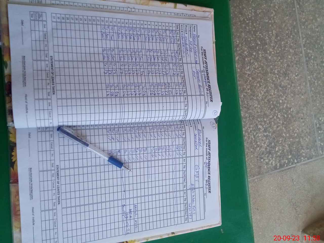 | CNIC | Full Name | Designation | R/C | Absence During Last Calender Month |
