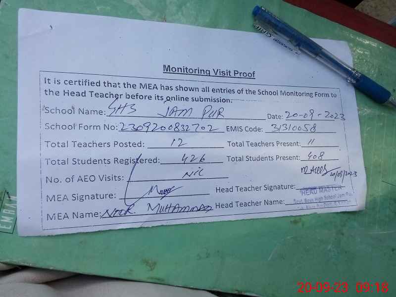 | EMIS Code: 31310058 | Name of School: GHS JAM PUR | |||