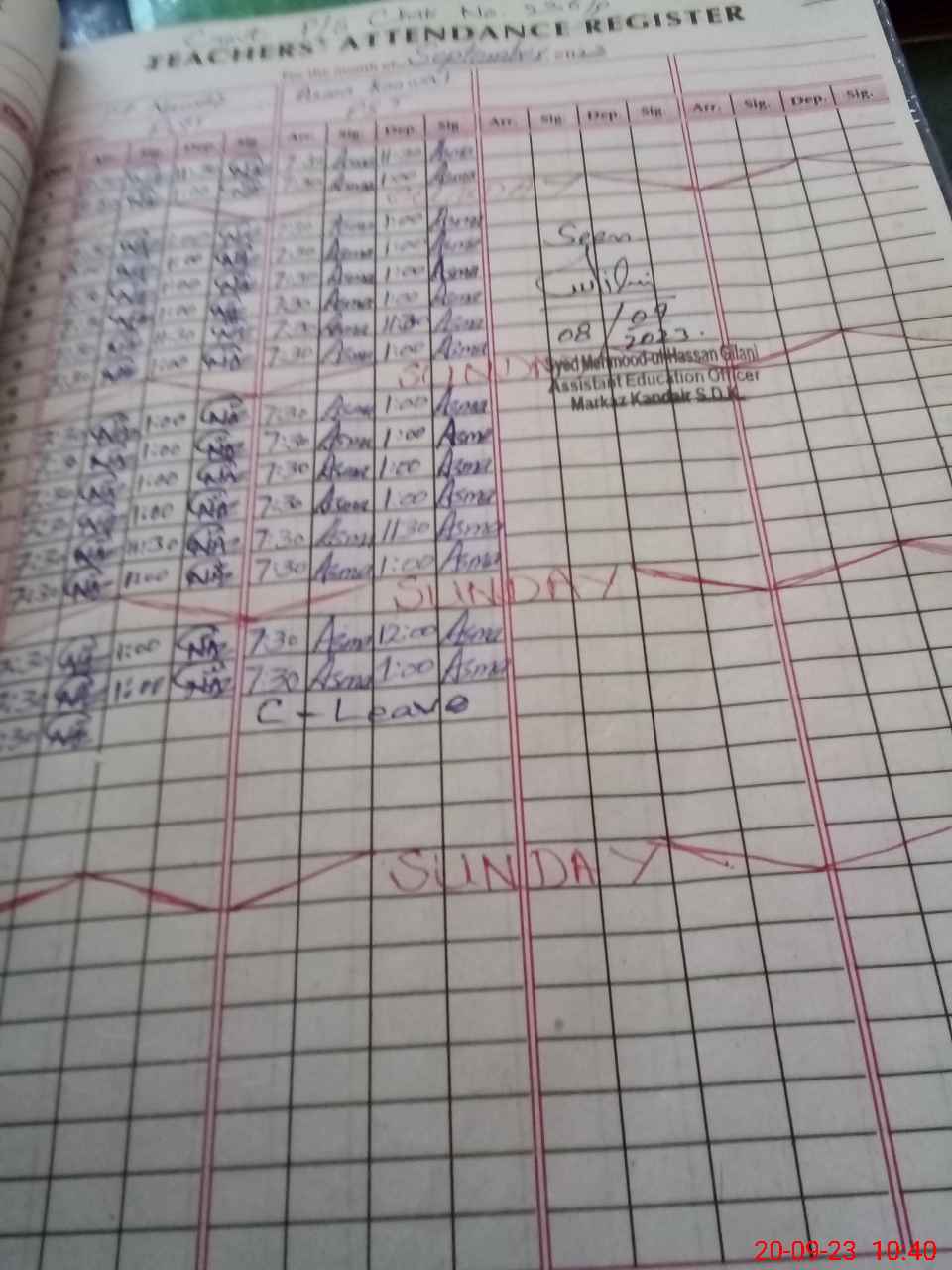 | CNIC | Full Name | Designation | R/C | Absence During Last Calender Month |