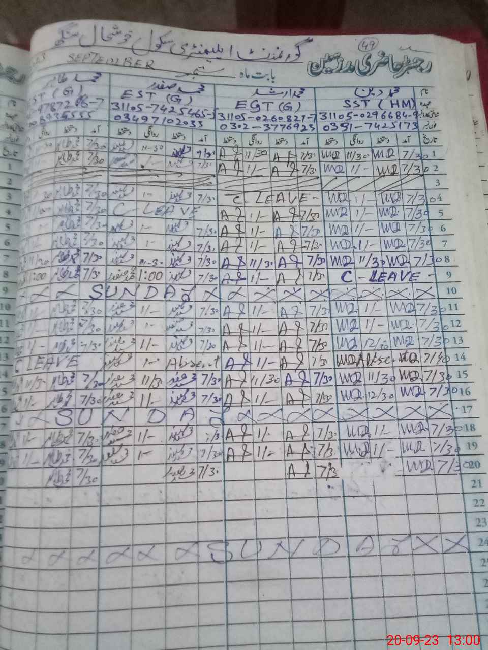 | Name: Mo**** Ar**** Designation: (School Headmaster's/Headmistress's) EST Phone/Cell Number: 03**** |