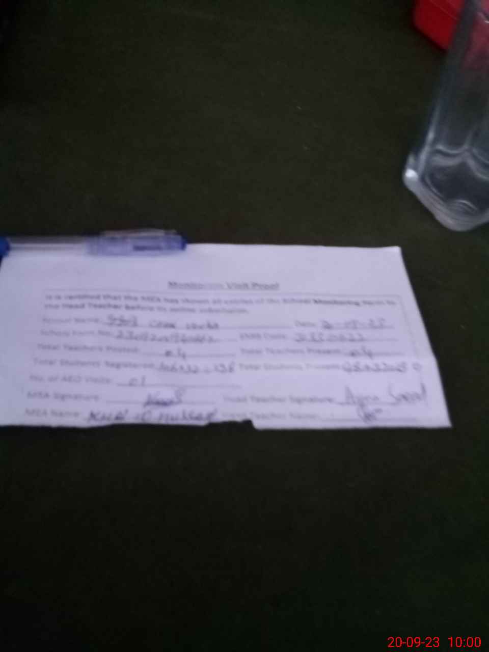 | Attendance Register | Head Teacher | MEA with School | Visit Proof |