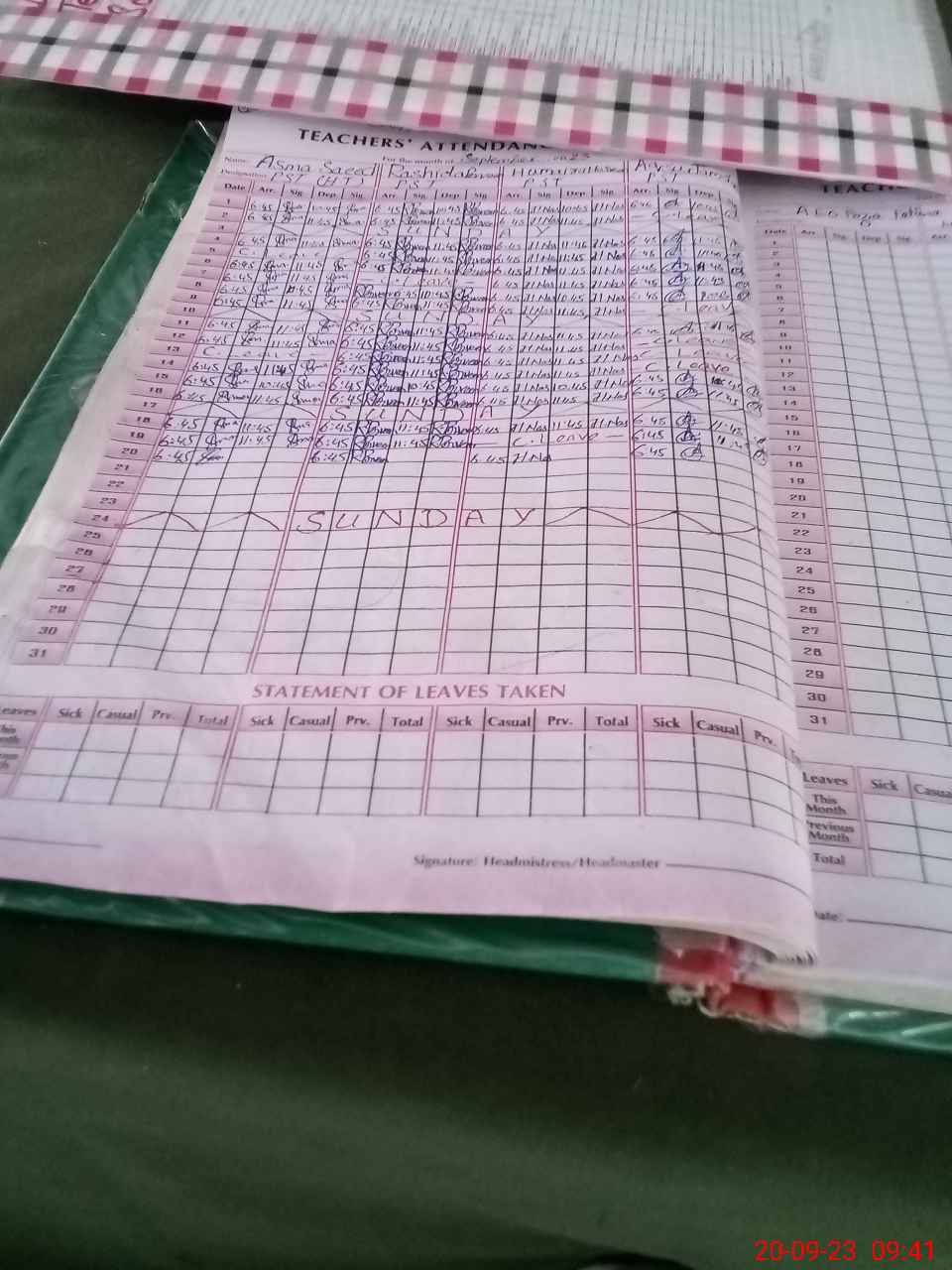 | CNIC | Full Name | Designation | R/C | Absence During Last Calender Month |