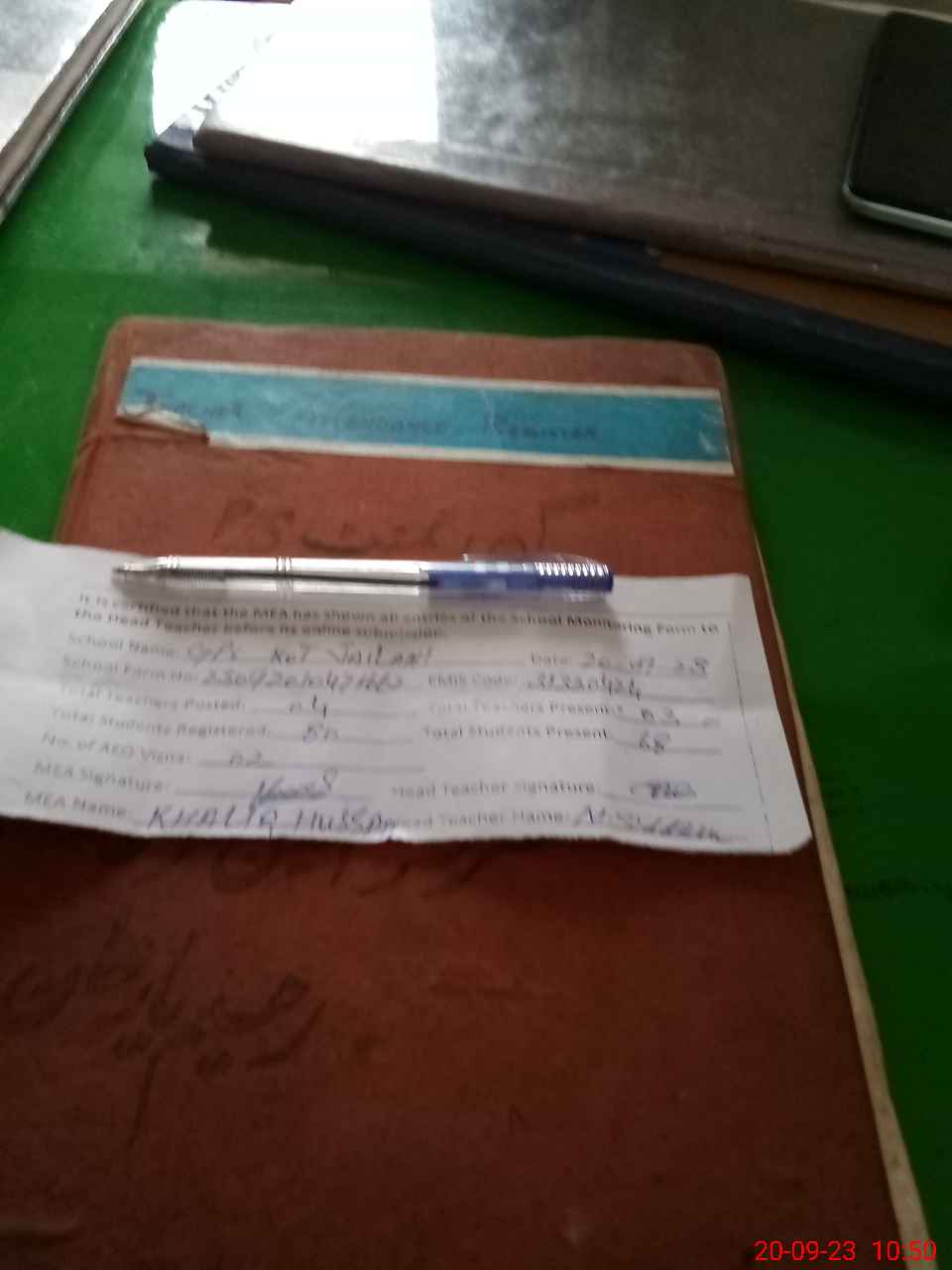 | Attendance Register | Head Teacher | MEA with School | Visit Proof |