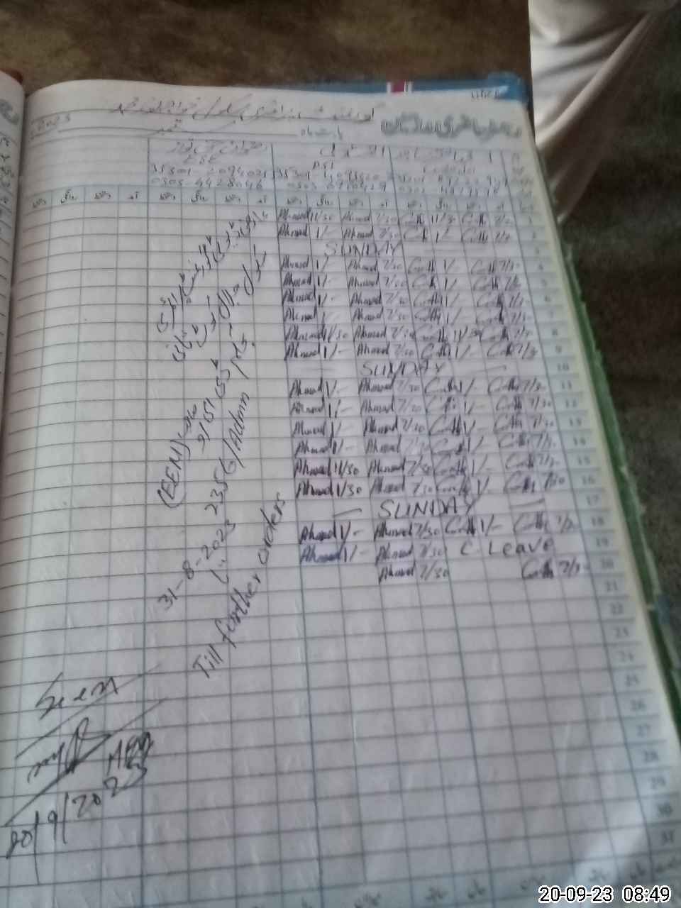 | CNIC | Full Name | Designation | R/C | Absence during last cal. month |