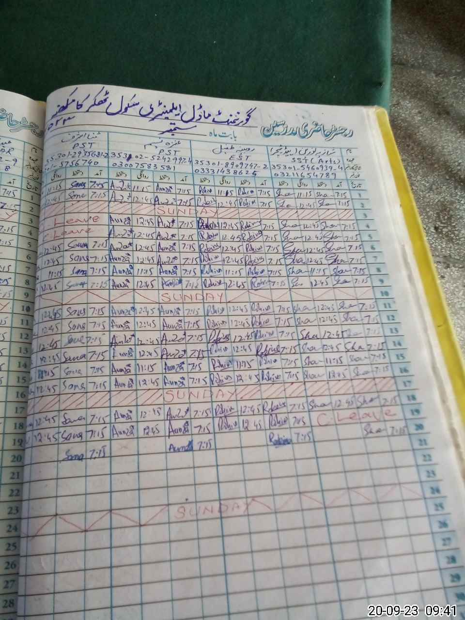 | Name: Sh**** No**** Designation: (School Headmaster's/Headmistress's) SST Phone/Cell Number: 03**** |