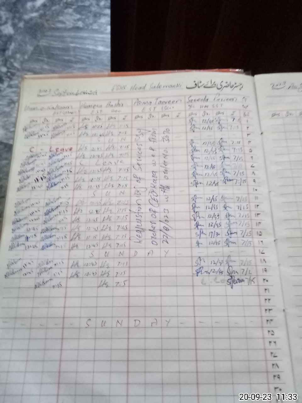 | CNIC | Full Name | Designation | R/C | Absence During Last Calender Month |