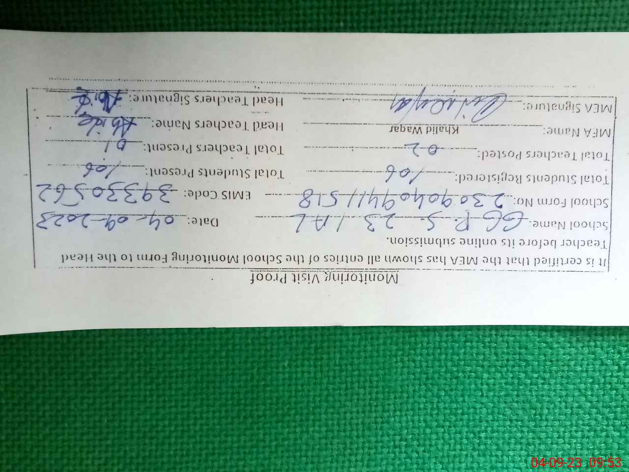 | Name: Ab**** Pa**** Designation: (School Headmaster's/Headmistress's) PST H.T Phone/Cell Number: 03**** |