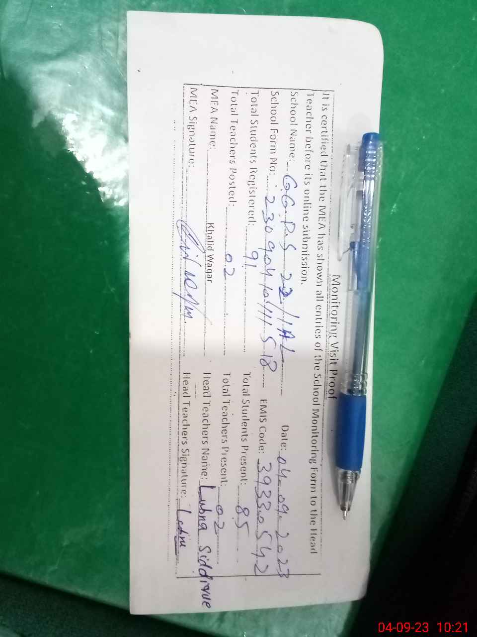 | EMIS Code: 39330542 | Name of School: GGPS 22-1AL | |||