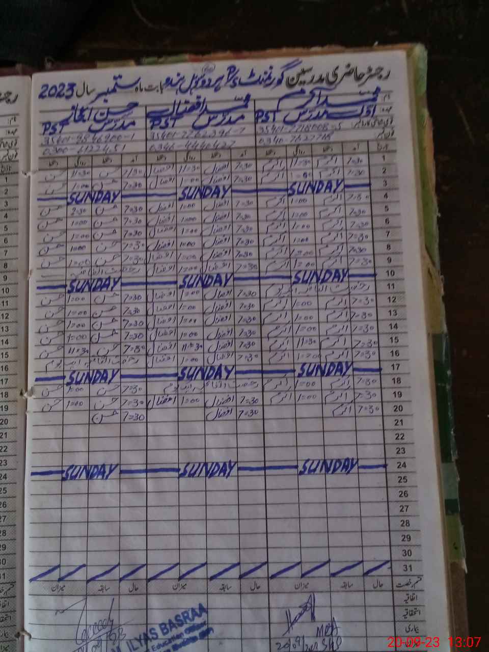 | Name: MU**** AK**** Designation: (School Headmaster's/Headmistress's) PST Phone/Cell Number: 03**** |