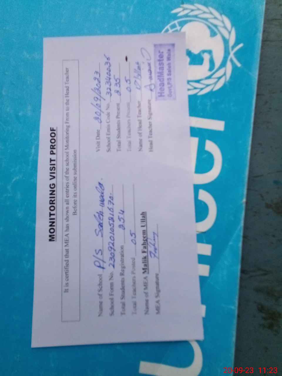 | EMIS Code: 32340036 | Name of School: GPS SALEH WALA | |||