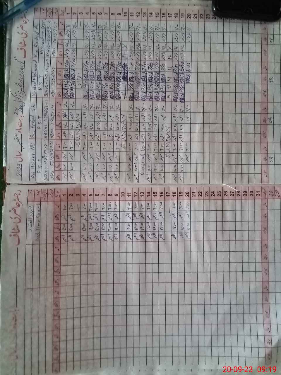| Name: RA**** AL**** Designation: (School Headmaster's/Headmistress's) PST Phone/Cell Number: 03**** |