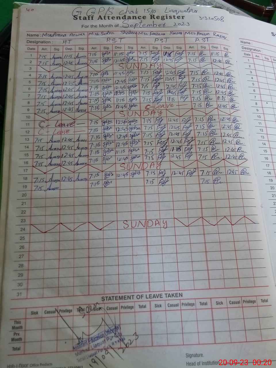 | Name: Fa**** Ku**** Designation: (School Headmaster's/Headmistress's) PST Phone/Cell Number: 03**** |