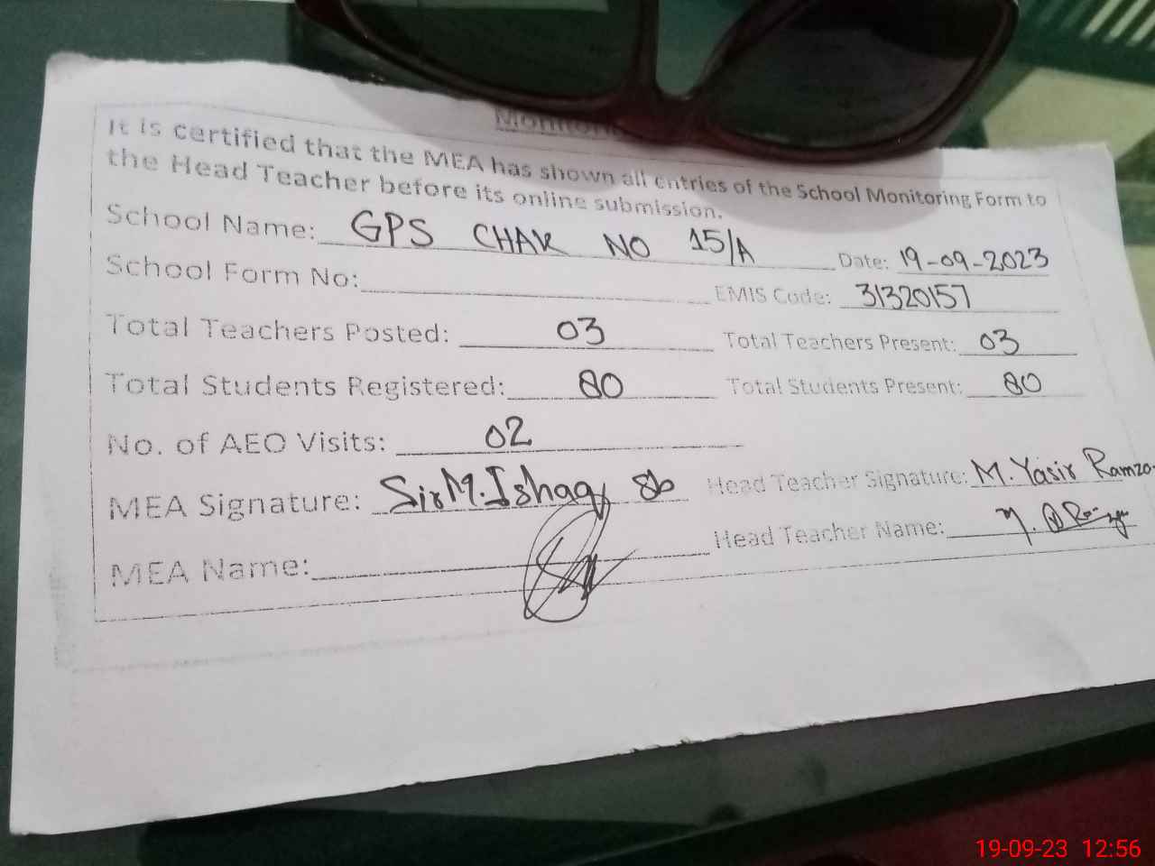 | EMIS Code: 31320157 | Name of School: GPS CHAK 15/A | |||