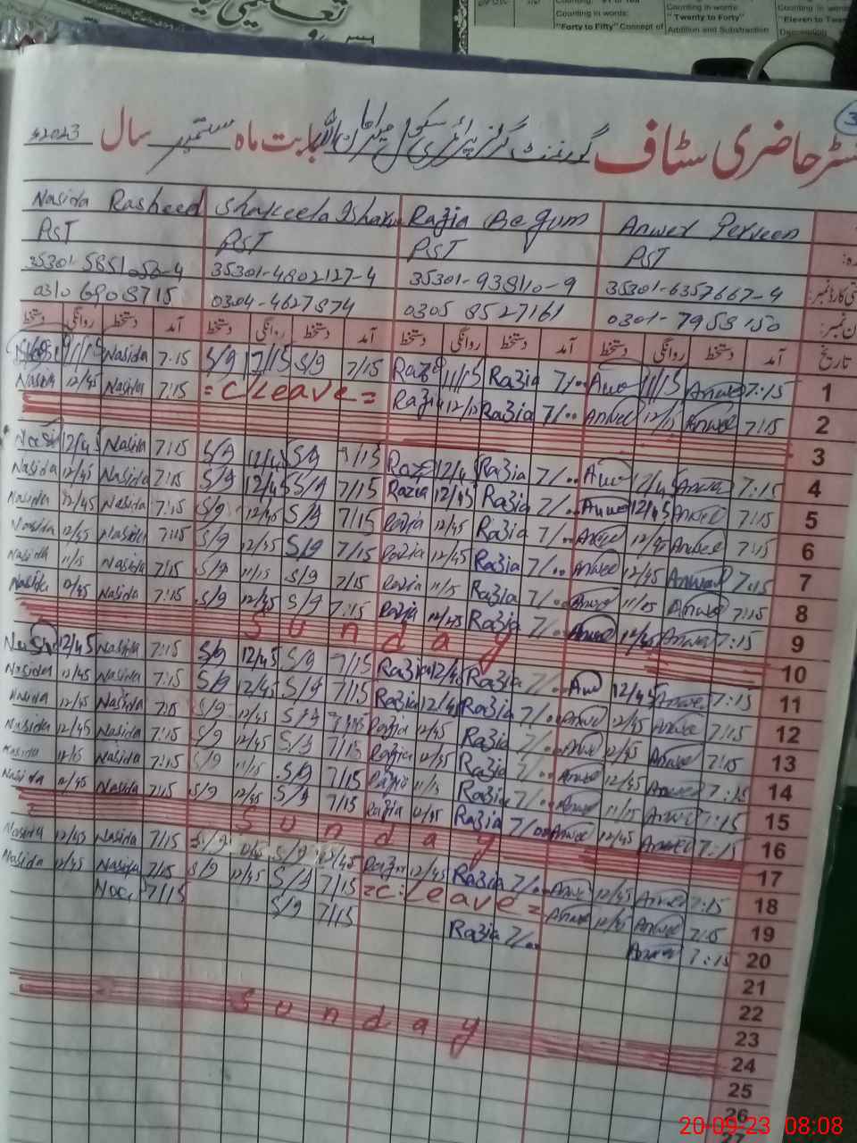 | CNIC | Full Name | Designation | R/C | Absence During Last Calender Month |