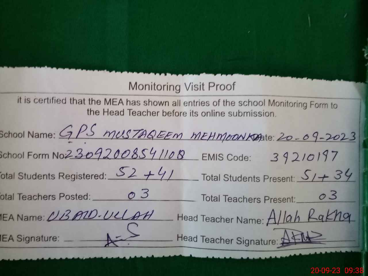 | EMIS Code: 39210197 | Name of School: GPS MUSTAQEEM MAHMONKA P/O PAKPATTAN | |||