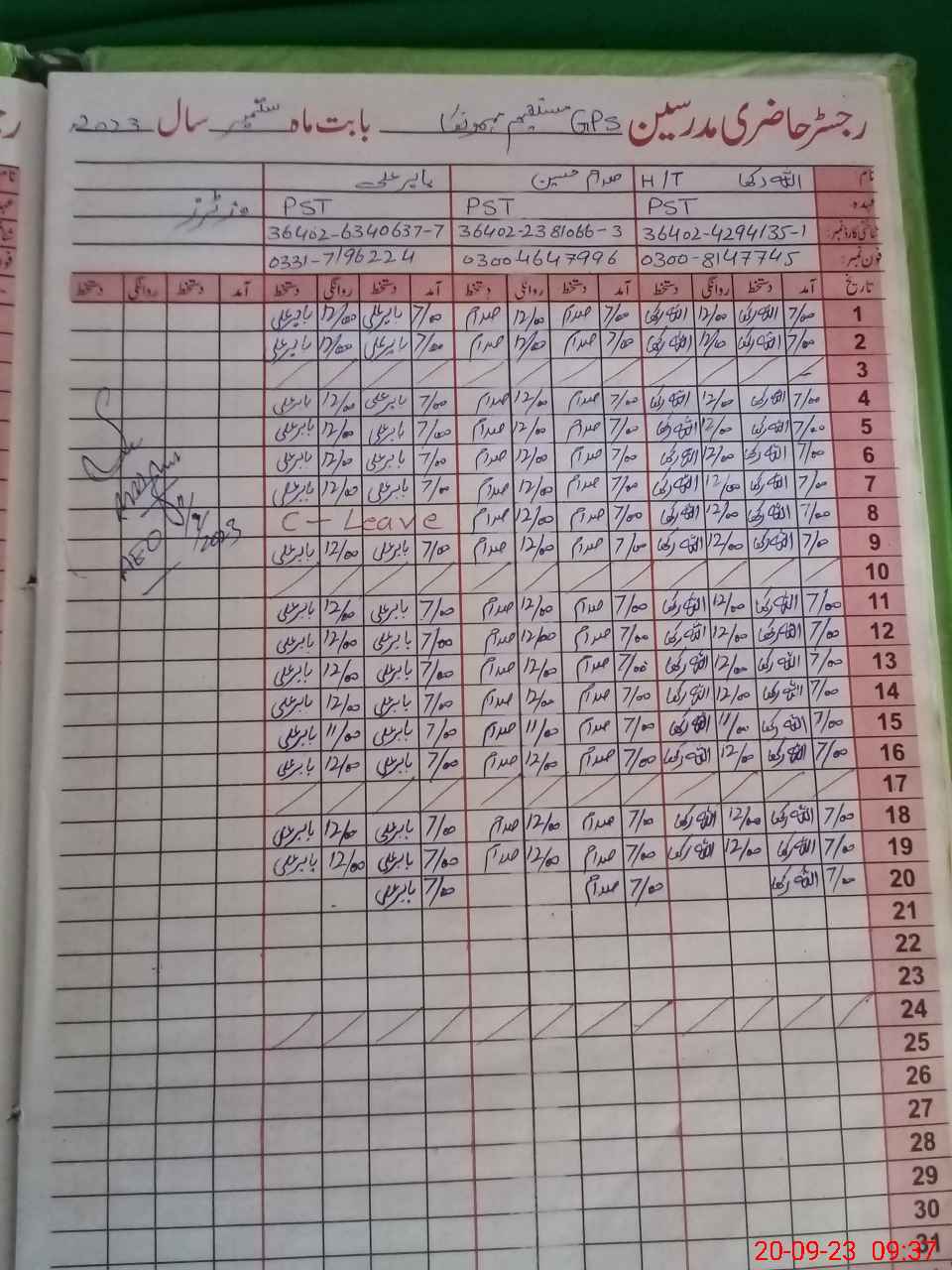 | Name: AL**** RA**** Designation: (School Headmaster's/Headmistress's) PST Phone/Cell Number: 03**** |