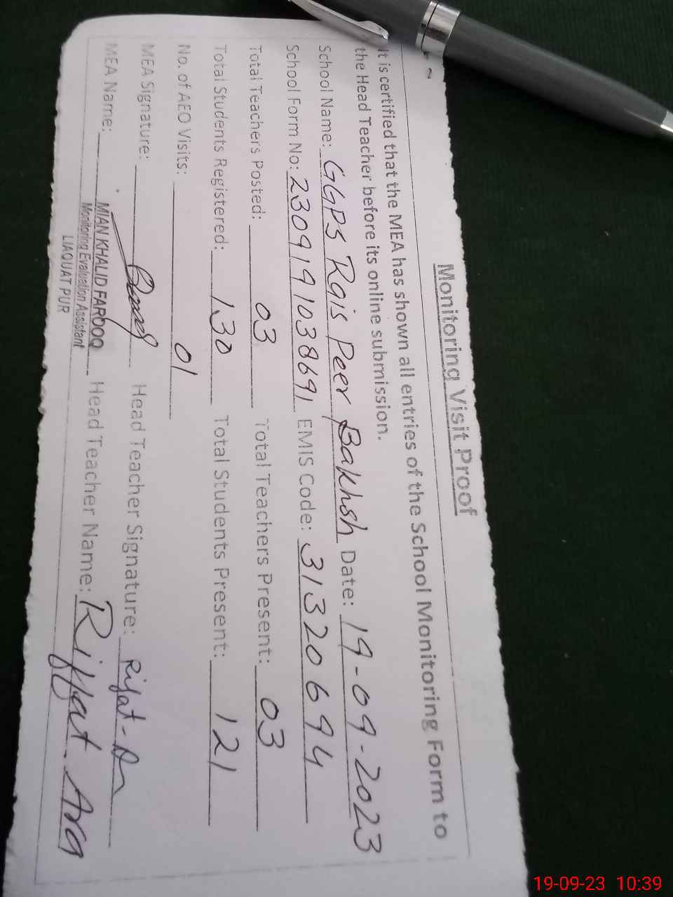 | EMIS Code: 31320694 | Name of School: GGPS RAIS PEER BUX | |||