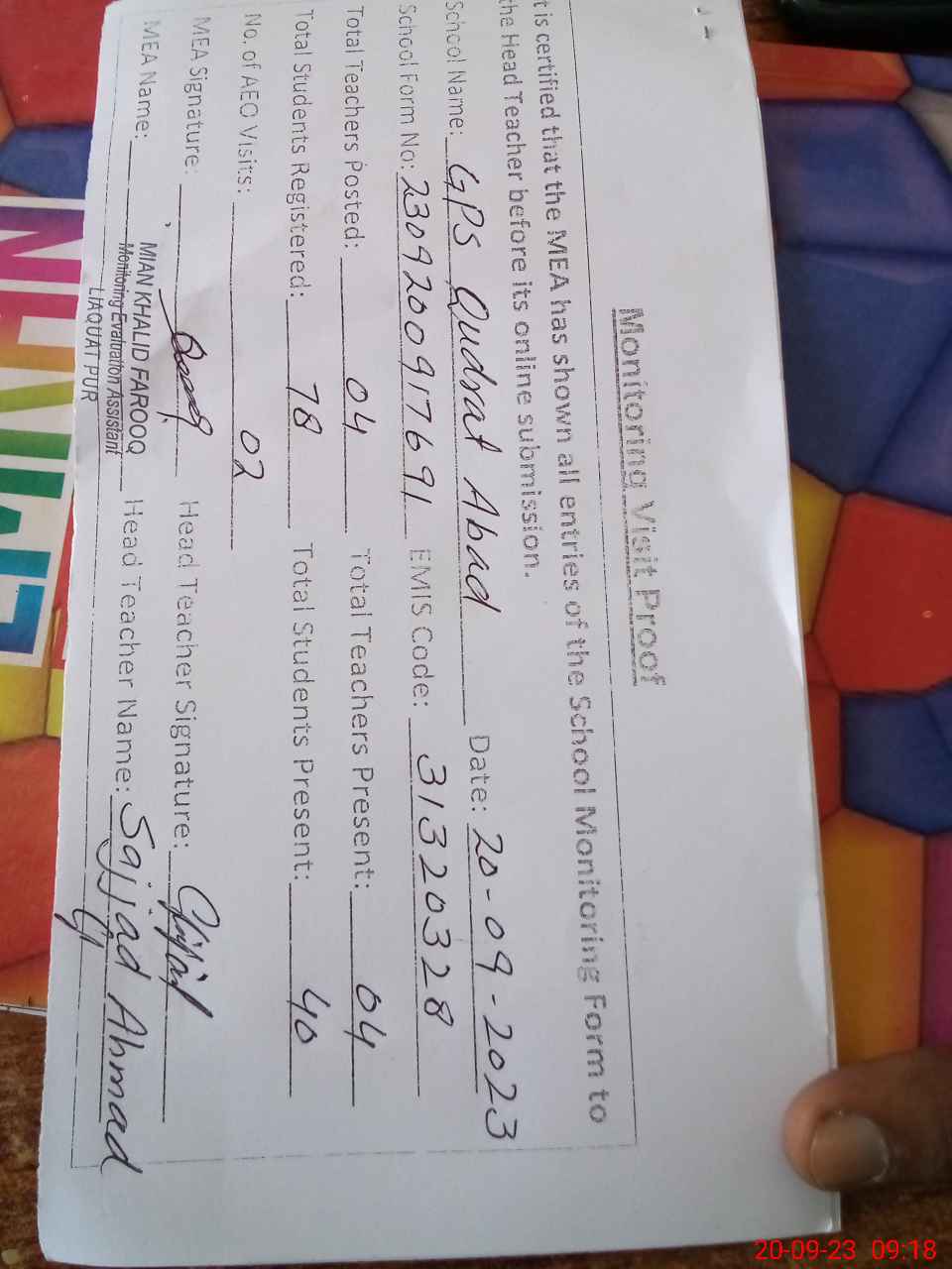 | EMIS Code: 31320328 | Name of School: GPS QUDRAT ABAD | |||