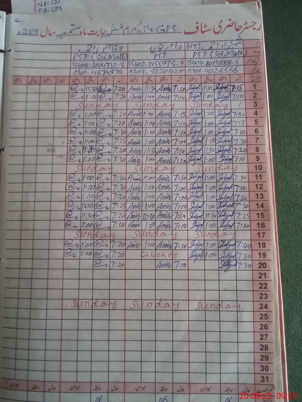 | Name: SH**** AH**** Designation: (School Headmaster's/Headmistress's) PST Phone/Cell Number: 03**** |