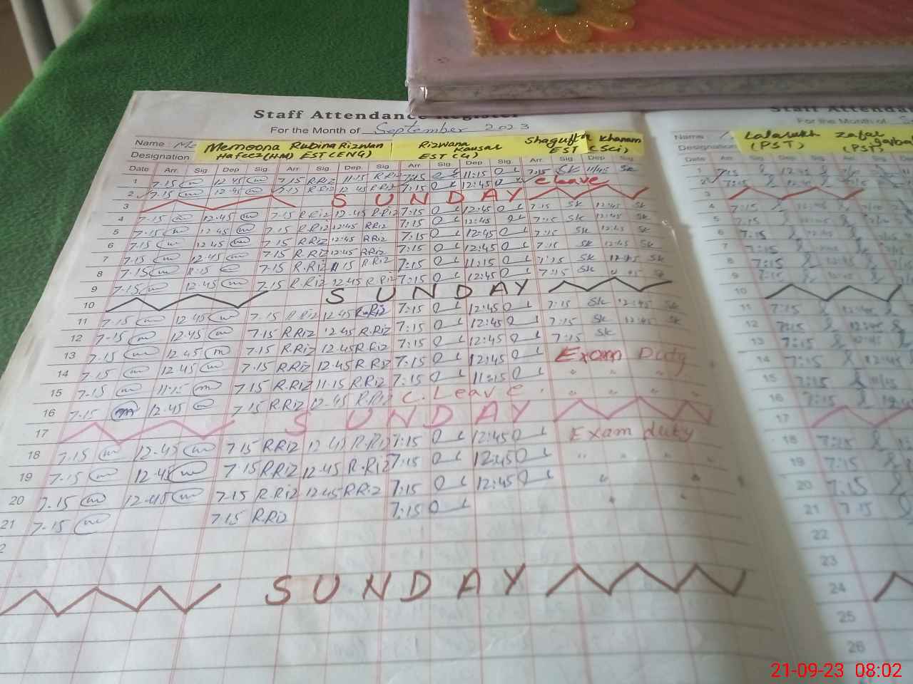 | 35**** | Sh**** Kh**** | 3 | 1 | 0 | 0 | 0 | 0 | 0 | 0 | 0 | 0 | 0 | Exam Duty |