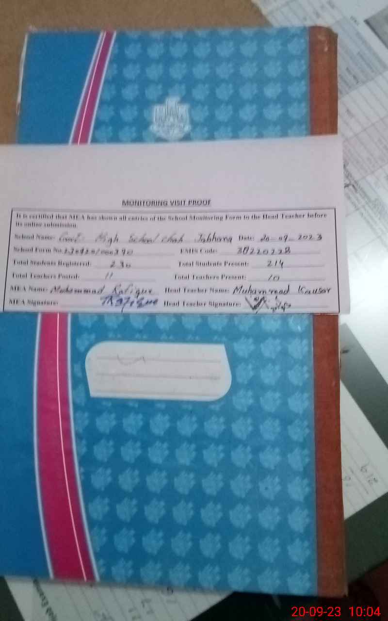 | EMIS Code: 38220228 | Name of School: GHS CHAH JABHANA RANGPUR | |||