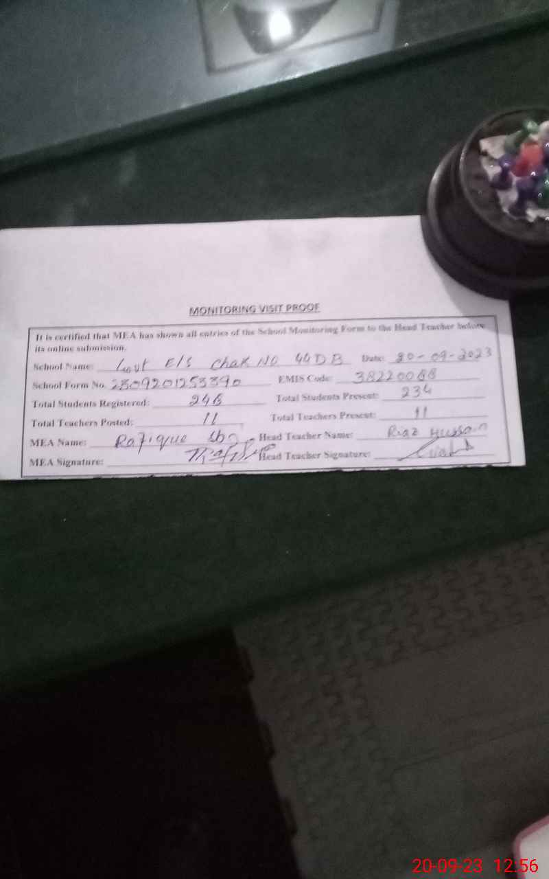 | EMIS Code: 38220088 | Name of School: GES CHAK NO. 44/DB | |||