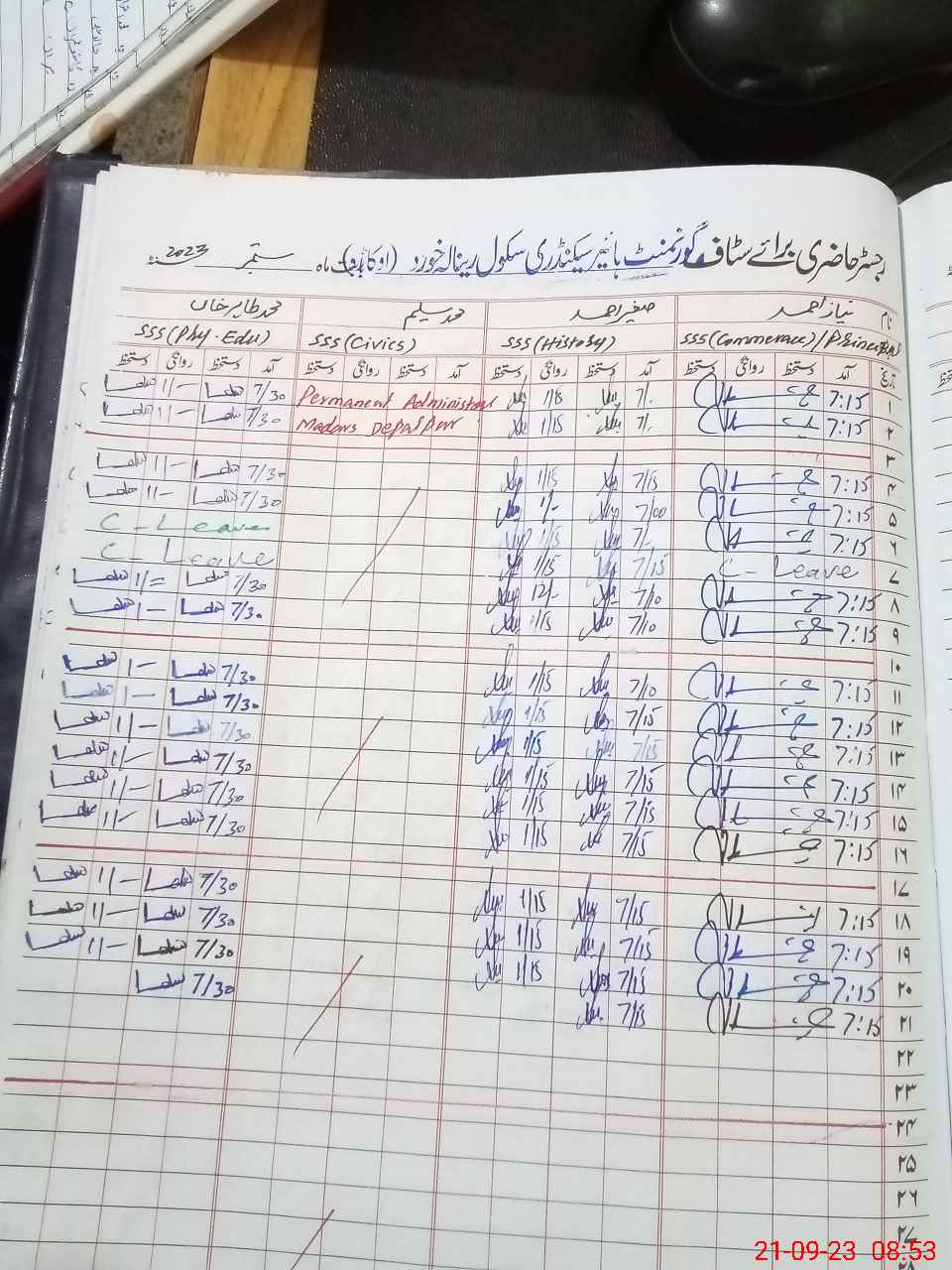 | CNIC | Full Name | Designation | R/C | Absence During Last Calender Month |