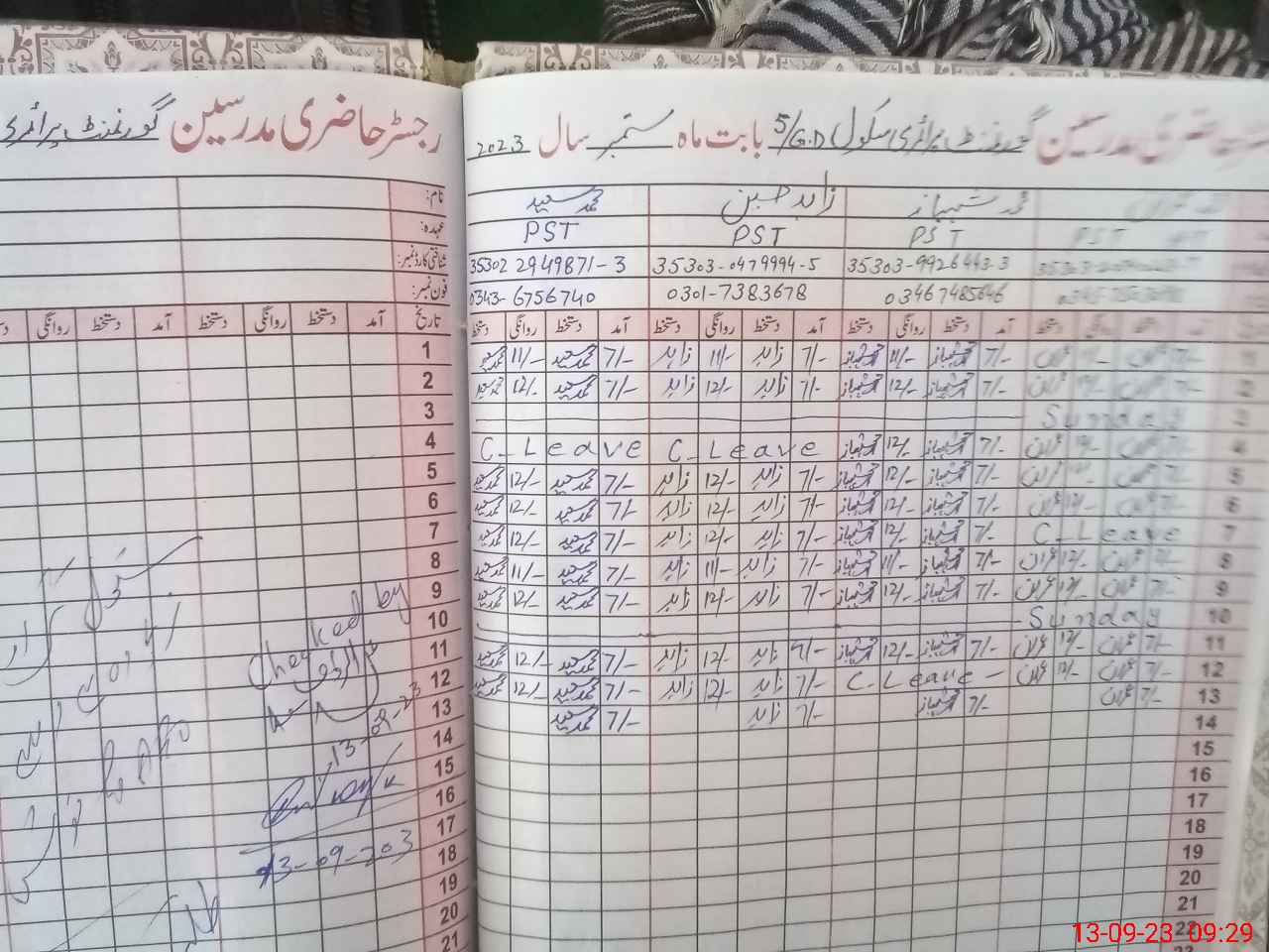 | Name: Mu**** Im**** Designation: (School Headmaster's/Headmistress's) PTC/JV Phone/Cell Number: 03**** |