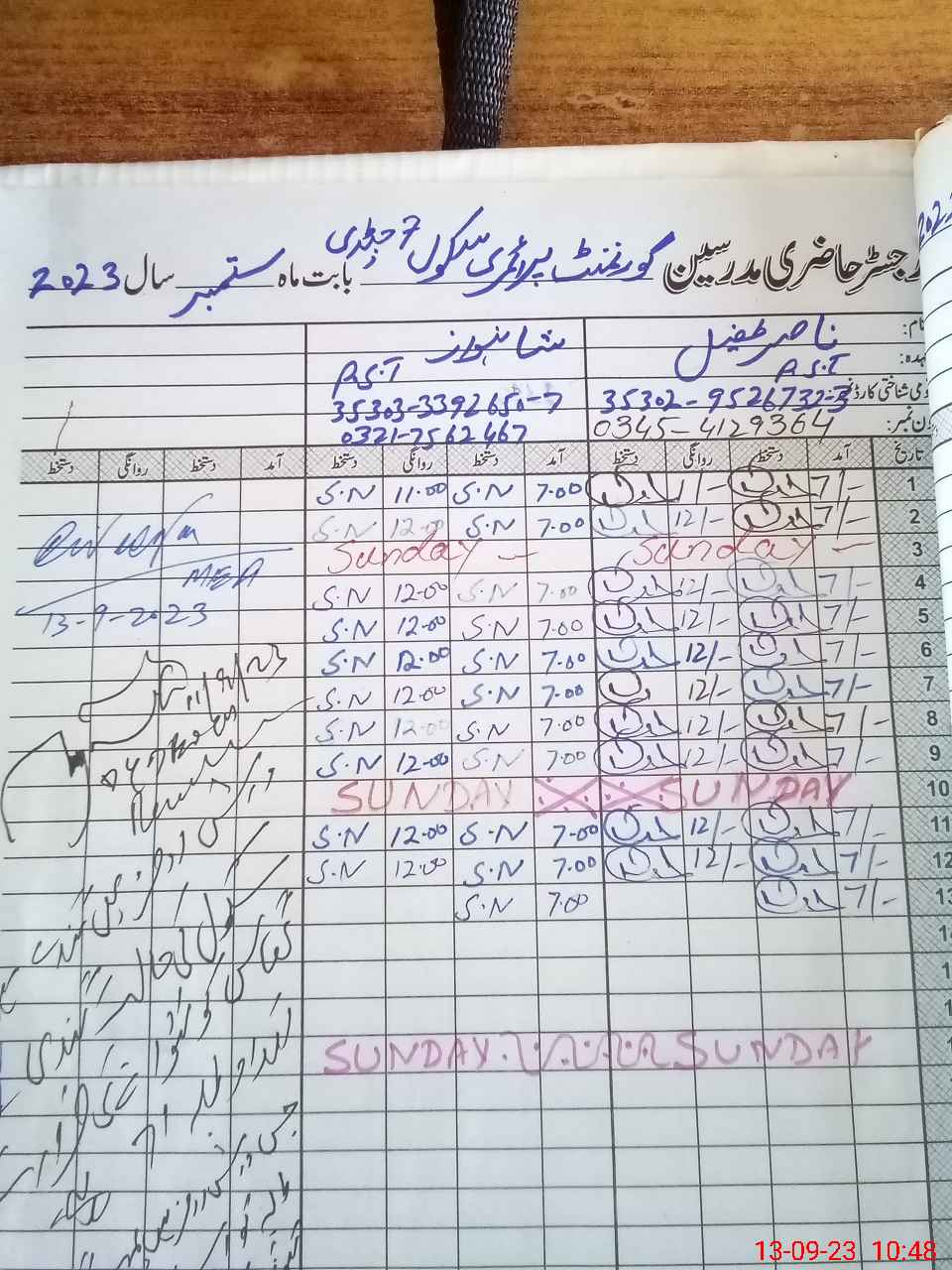 | Name: SH**** Designation: (School Headmaster's/Headmistress's) PST Phone/Cell Number: 03**** |