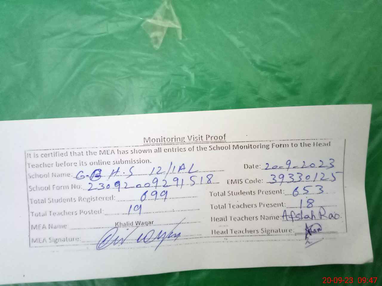 | Name: AF**** BA**** Designation: (School Headmaster's/Headmistress's) S.S.T(HM + IT ) Phone/Cell Number: 03**** |